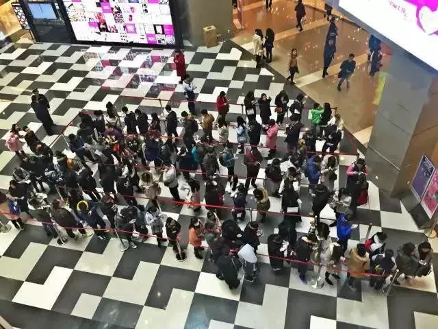 然后沿著商場長長的走廊延伸下去。路人總愛問我們排了多久了,